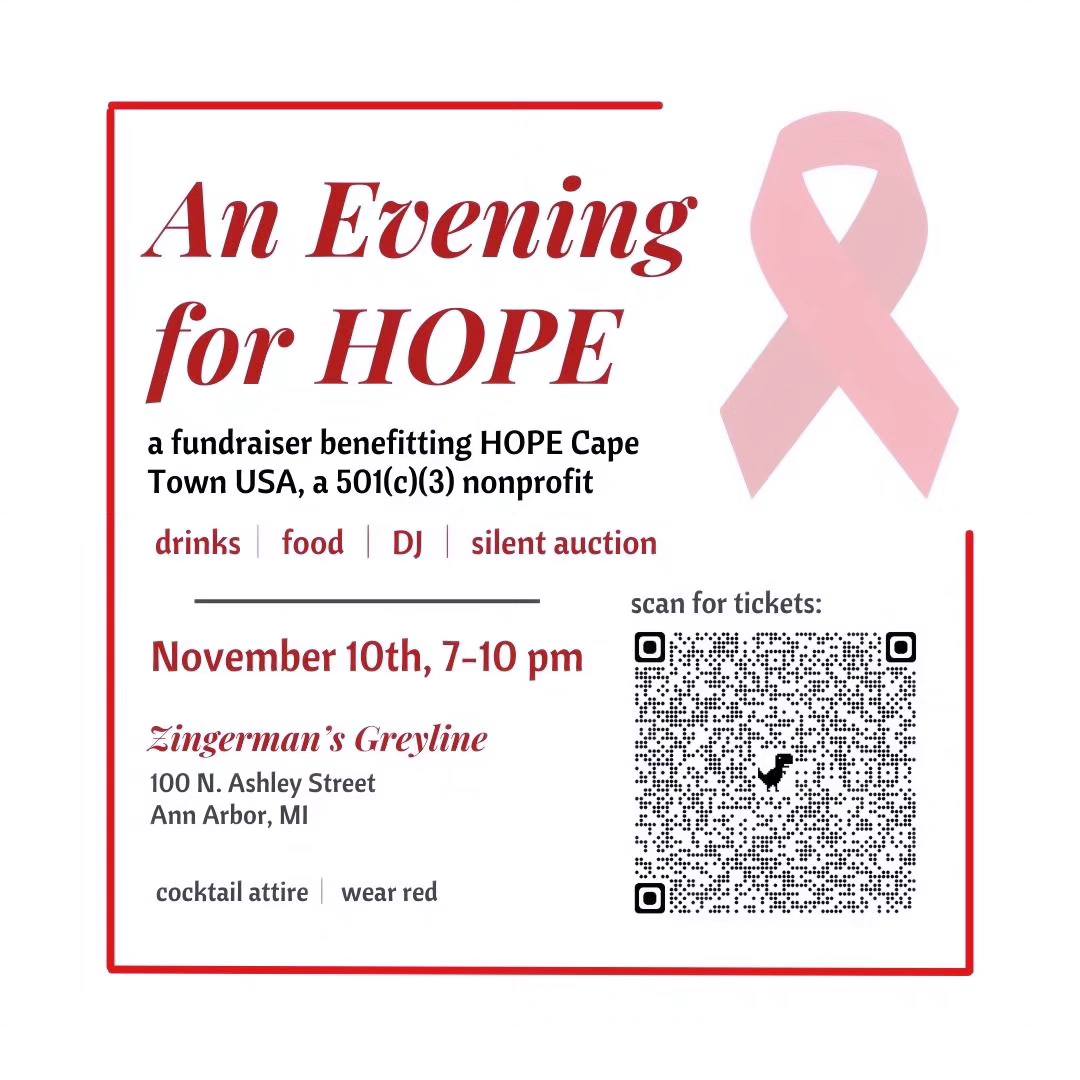 HOPE Cape Town USA Board Director Stacie Greskowiak McNulty and her team hosted an Evening of HOPE fundraiser in Michigan.